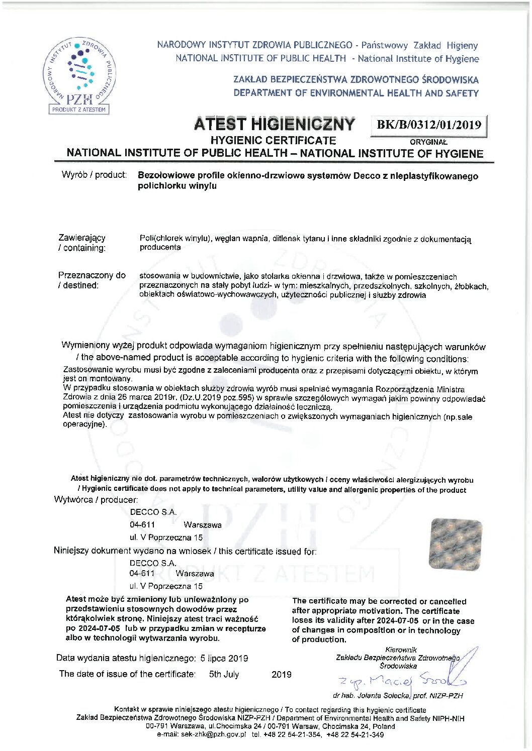 Atest higieniczny DEECCO
